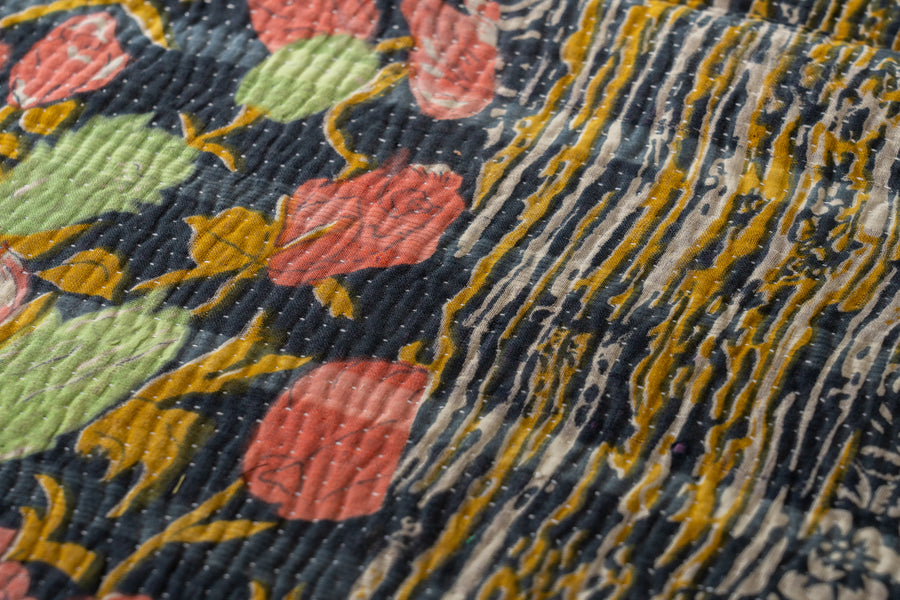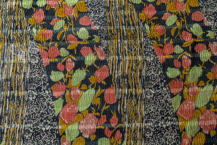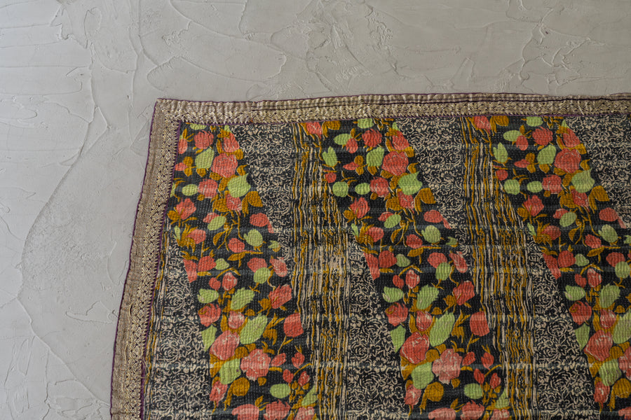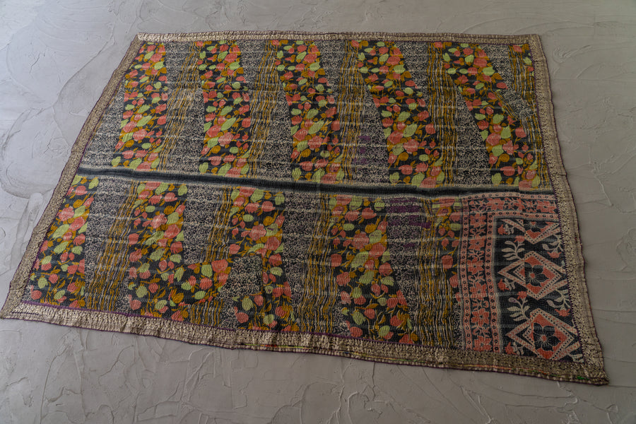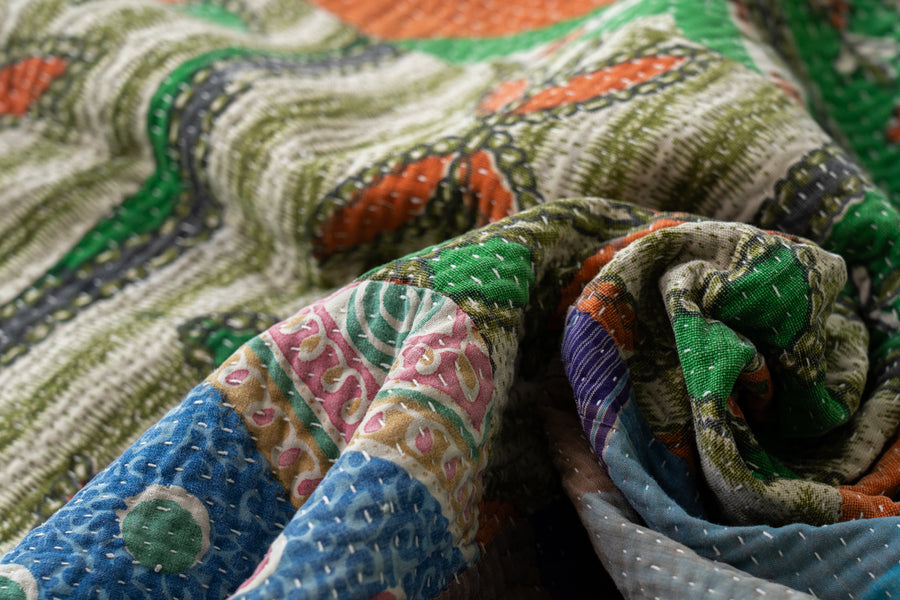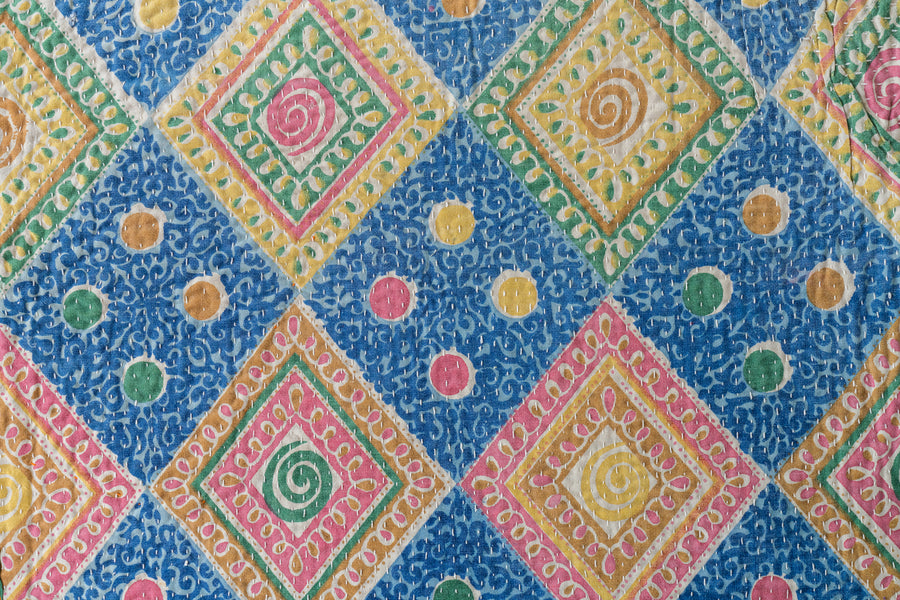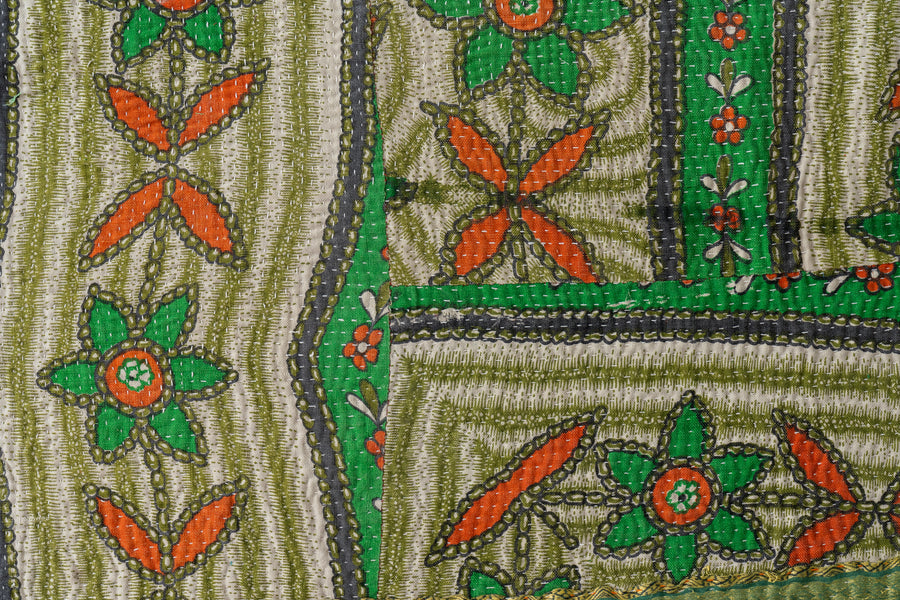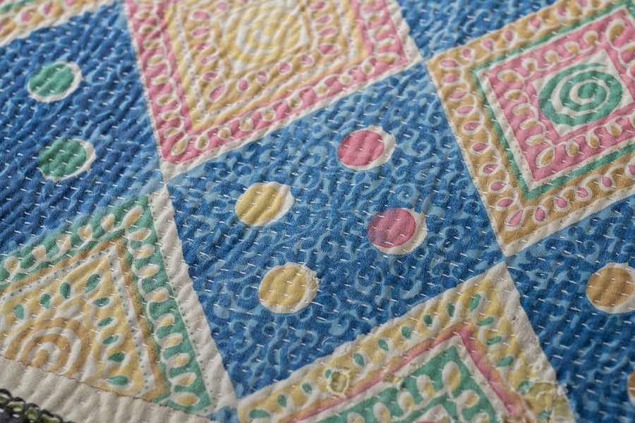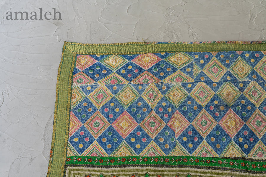 インド産 ヴィンテージ カンタキルト パッチワーク 手織り刺繍 手刺繍 ラリーキルト ソファカバー ヴィンテージ雑貨 民芸品 キルト専門店 amaleh