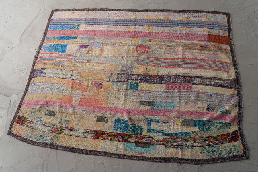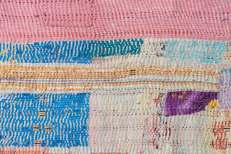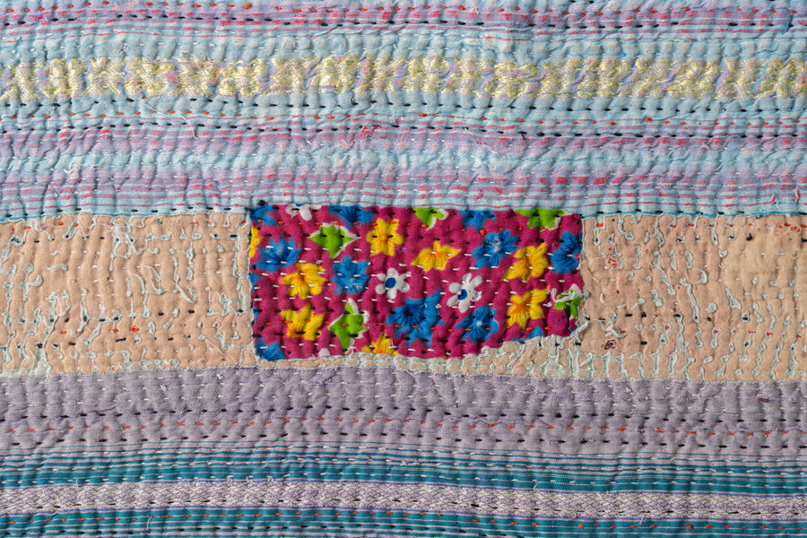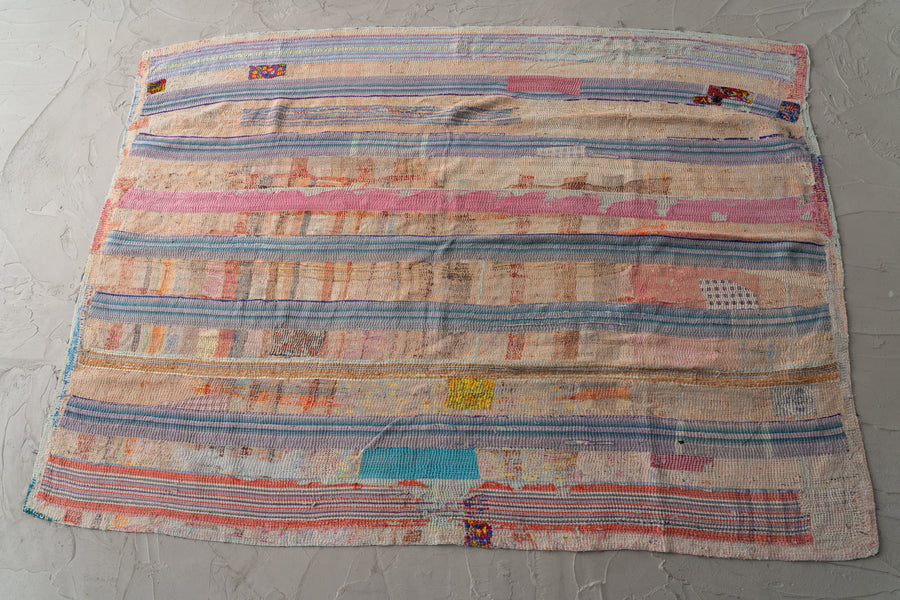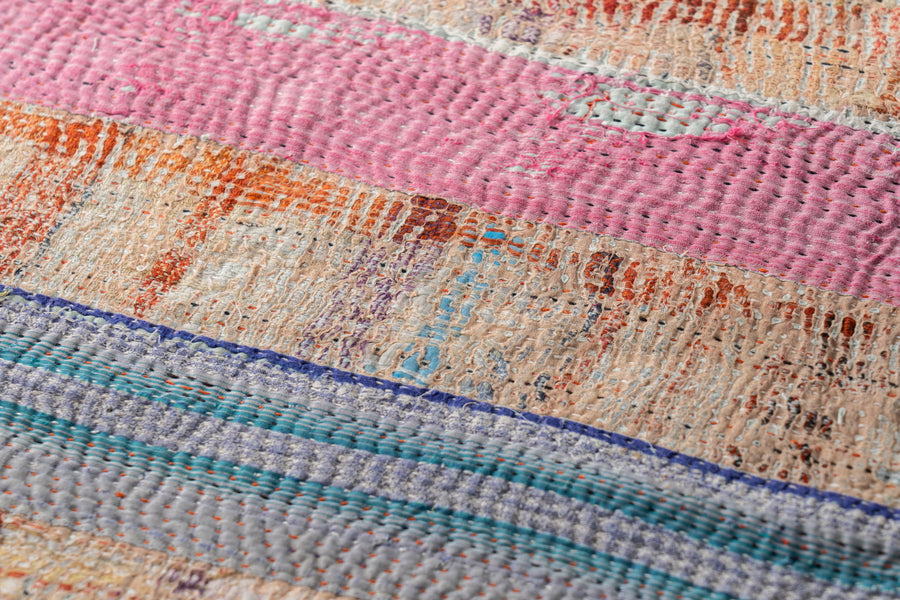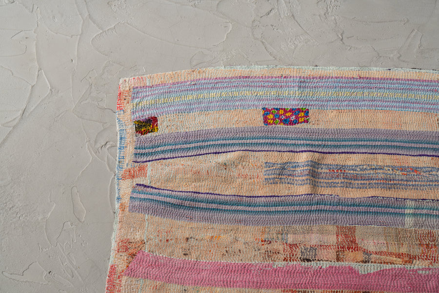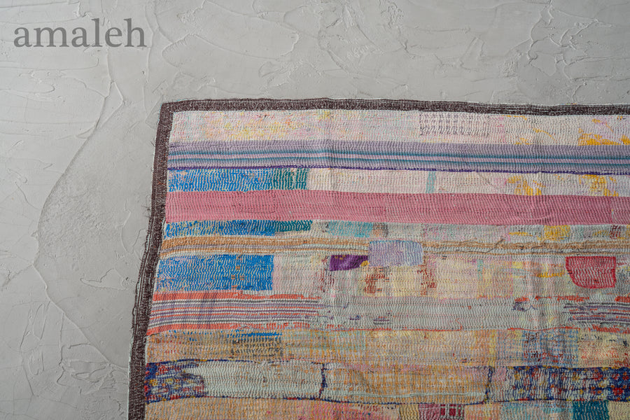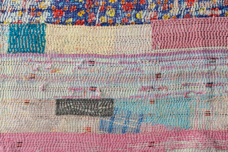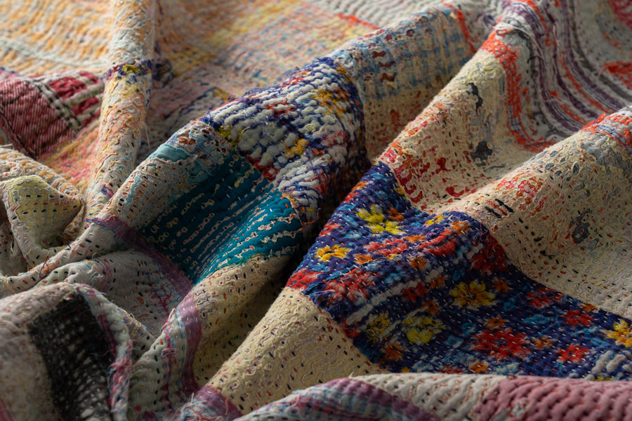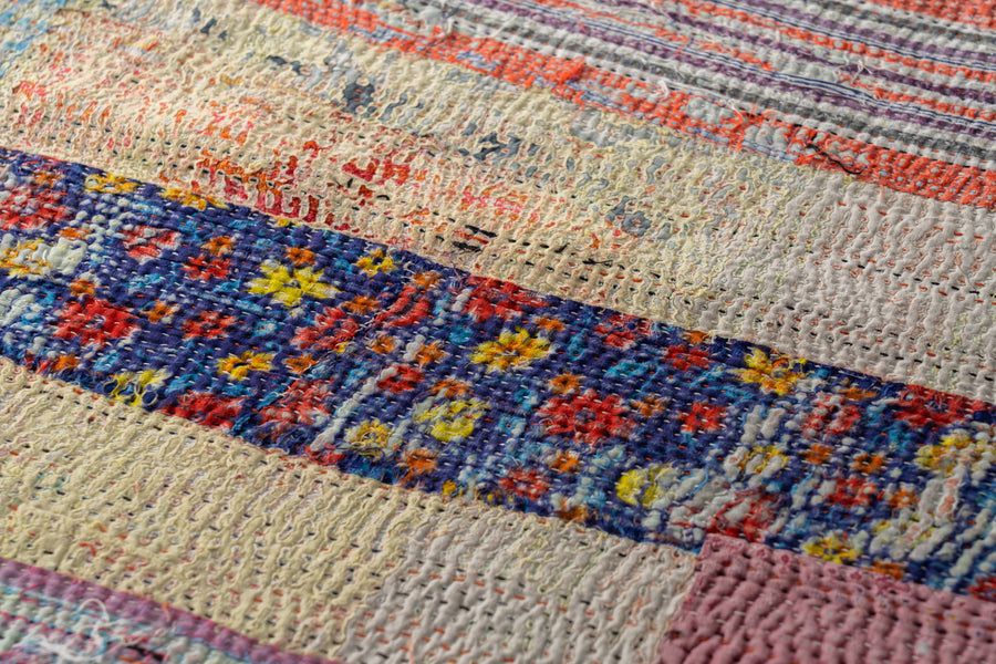 サリーなどの民族衣装の古布を繋いで縫い合わせた刺子は表情がとても素敵でラグに通ずるものを感じます。