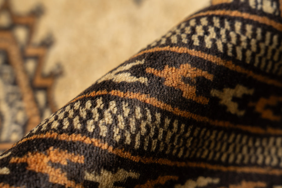 厚みはヴィンテージのパキスタンラグではやや厚手の9㎜程の厚みがございます。