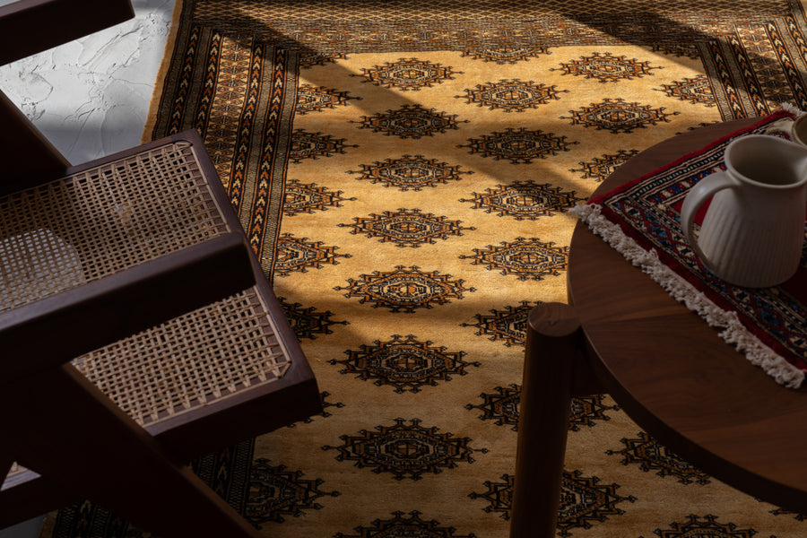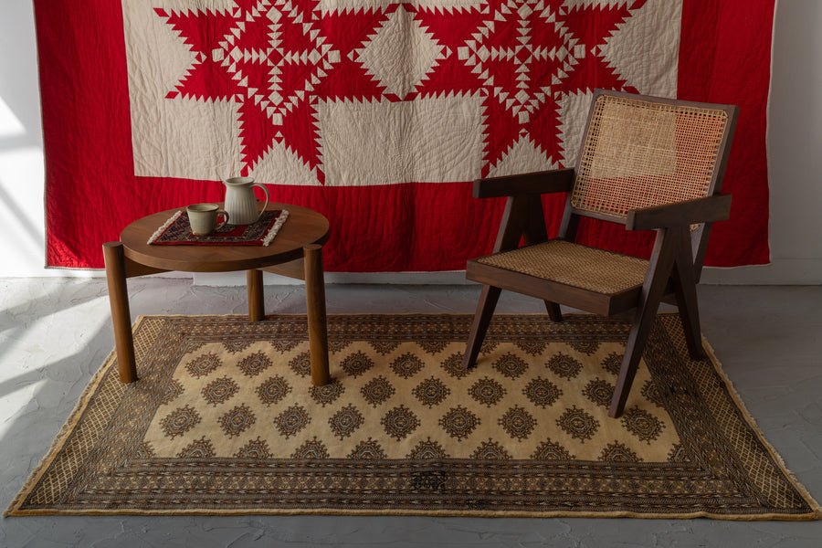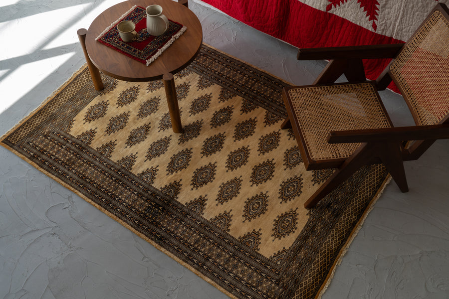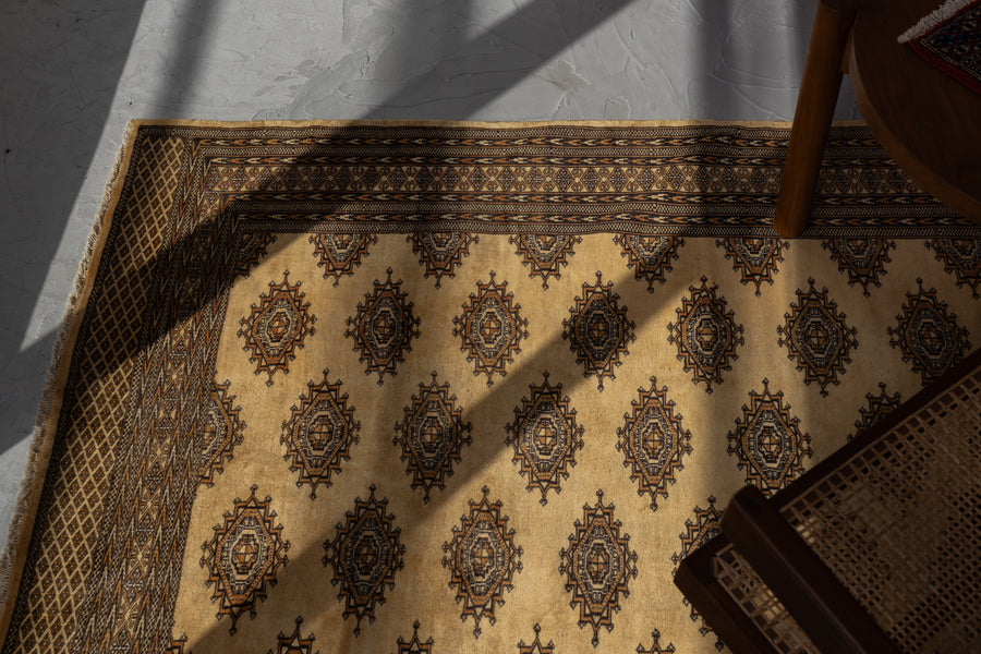 デザインはパキスタンラグらしいジャルダー柄が一面に織られています。