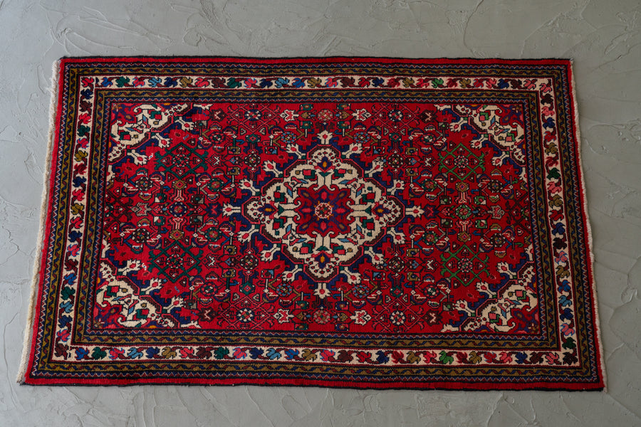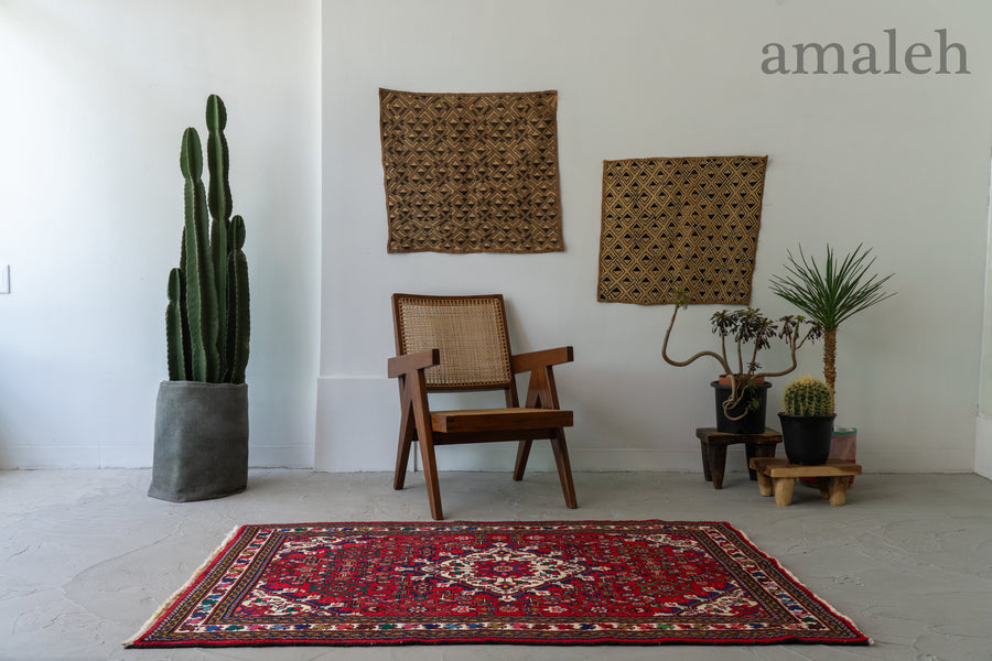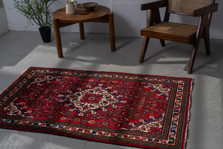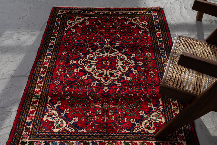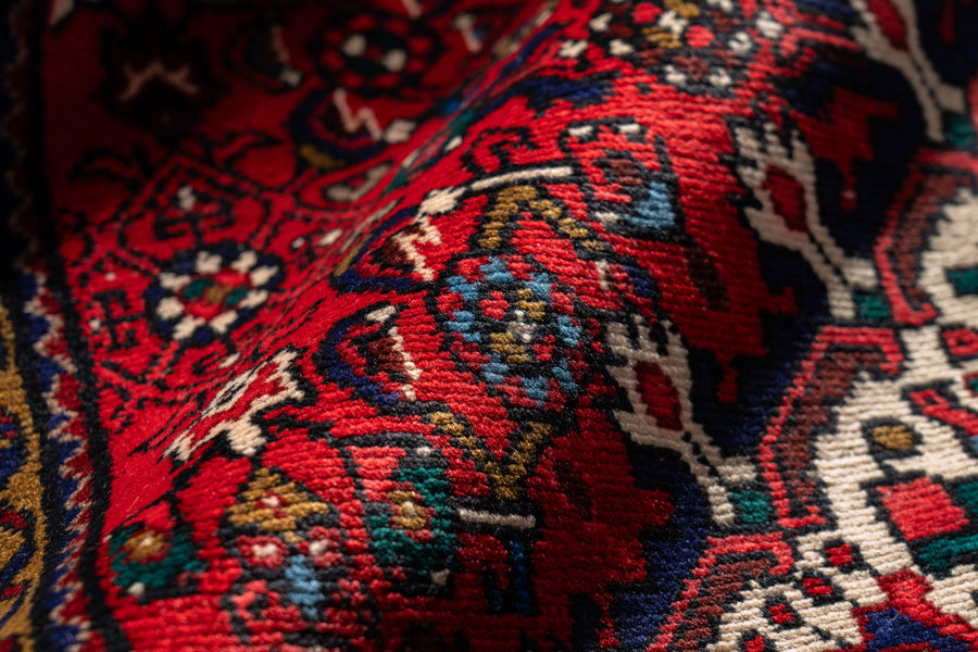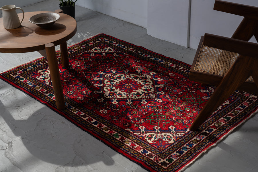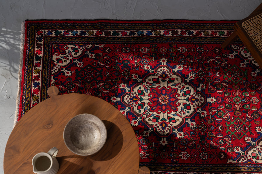 イラン・ハマダーン地方で織られた40年物のヴィンテージペルシャ絨毯。