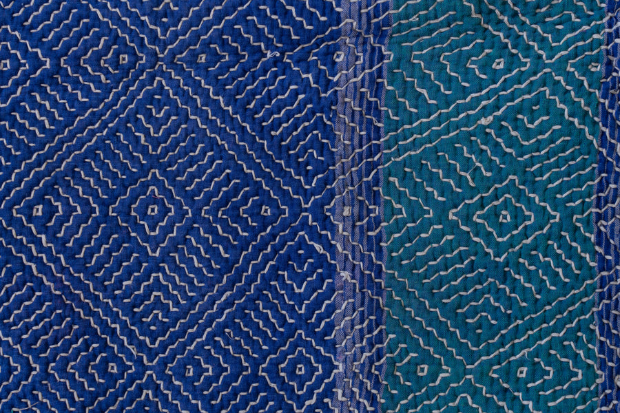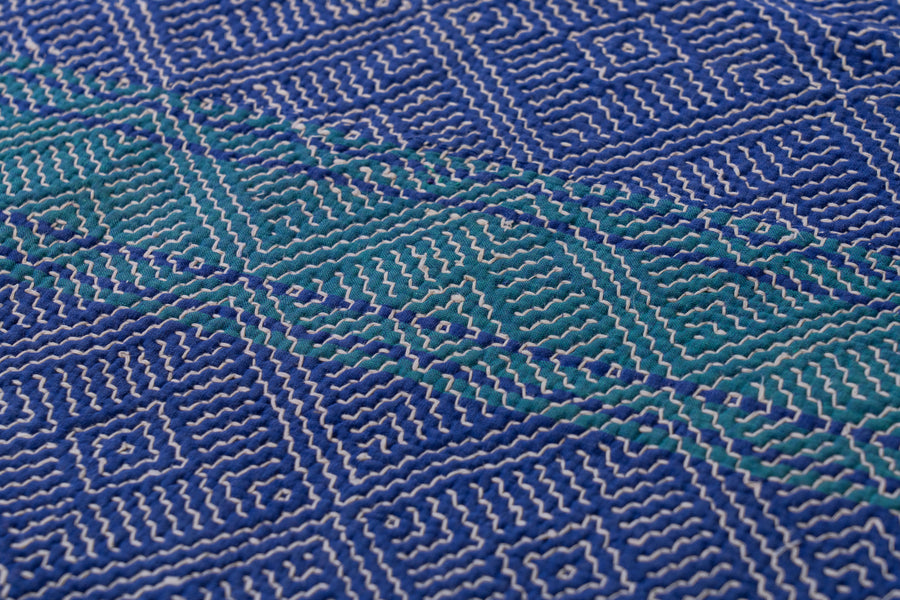 サリーなどの民族衣装の古布を繋いで縫い合わせた刺子は表情がとても素敵でラグに通ずるものを感じます。