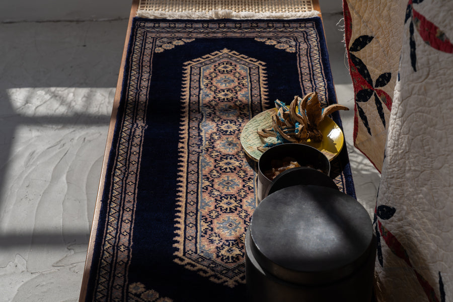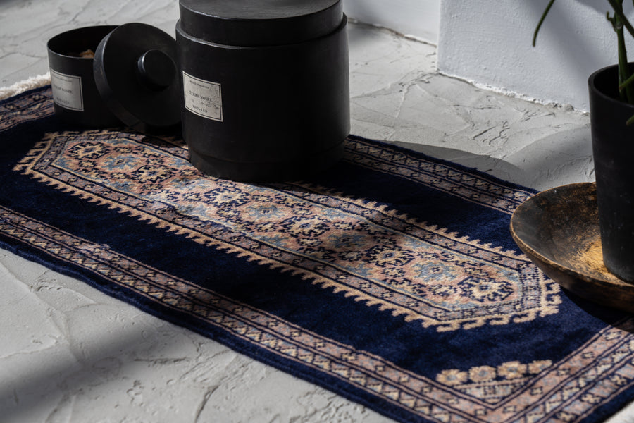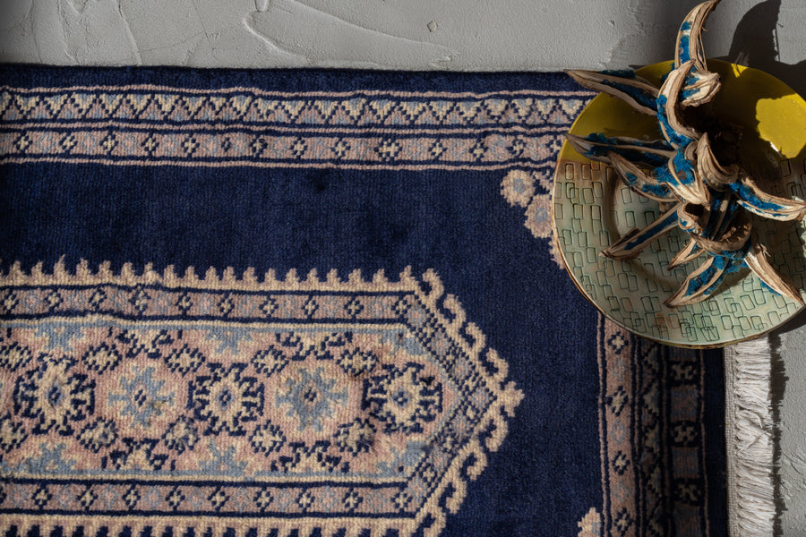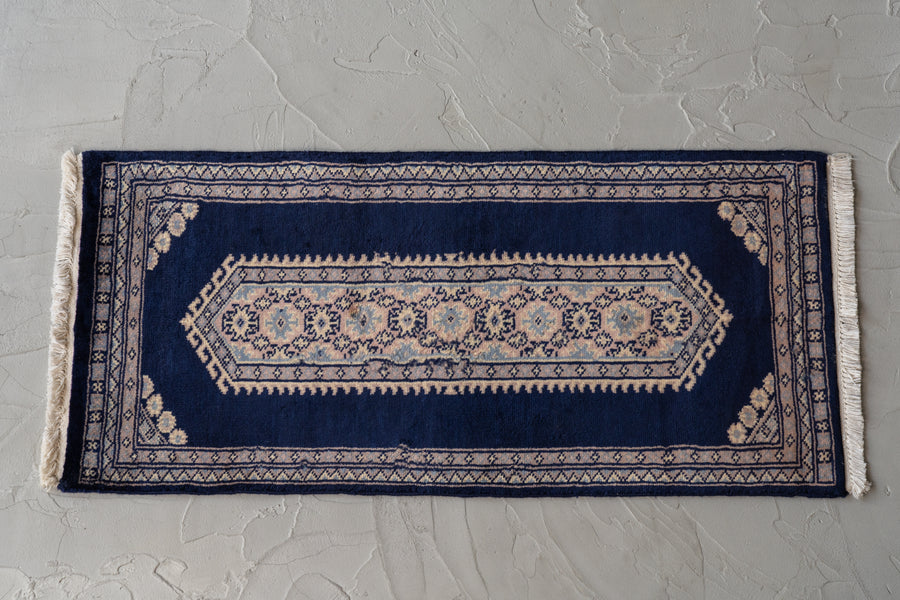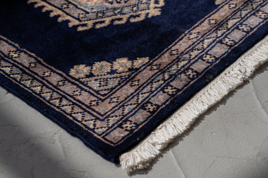 パキスタン産 1980年代 ヴィンテージラグ パキスタンラグ ネイビー ピンク 玄関マット 玄関 キッチンマット ベッドサイド 家具 ビンテージ 手織り 絨毯 カーペット ヴィン手ージラグ専門店 amaleh 通販