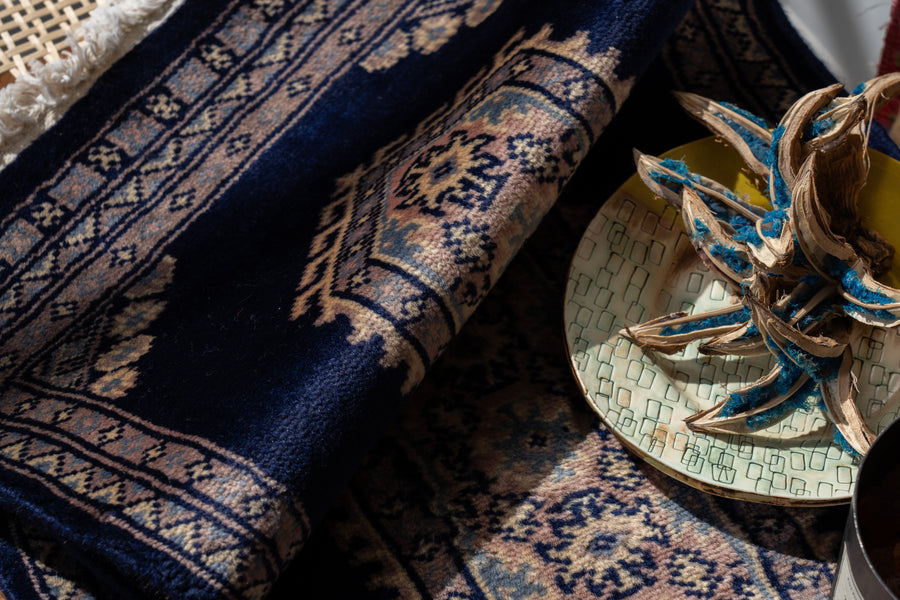 綺麗な寒色の配色が素敵なパキスタンラグ。