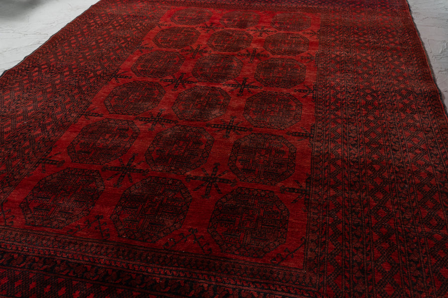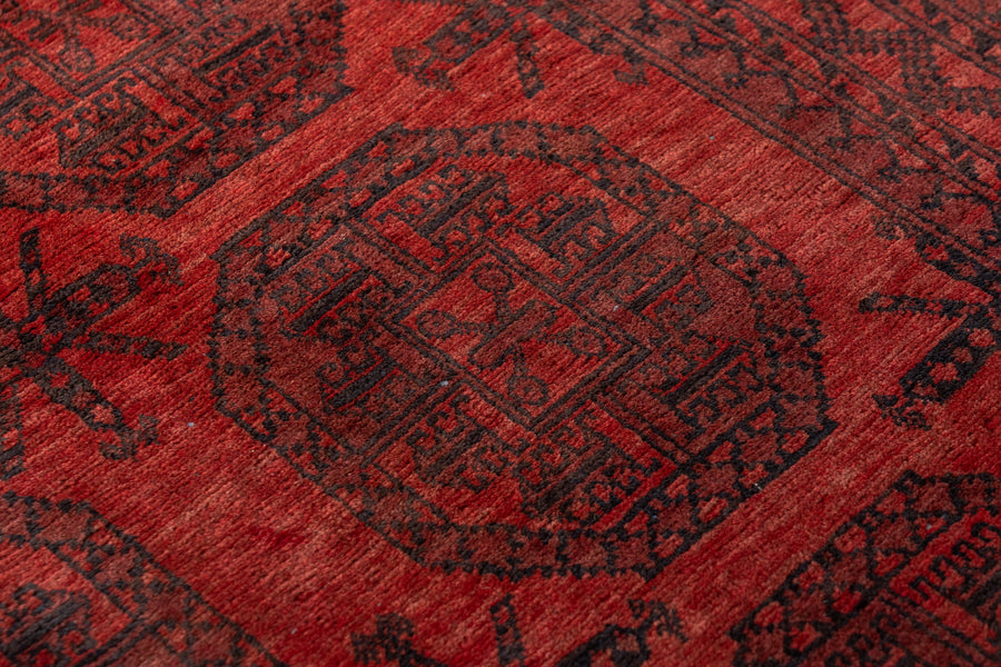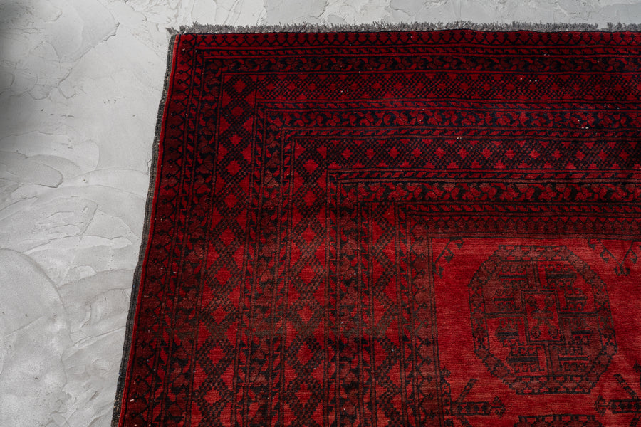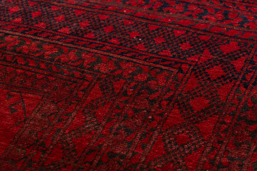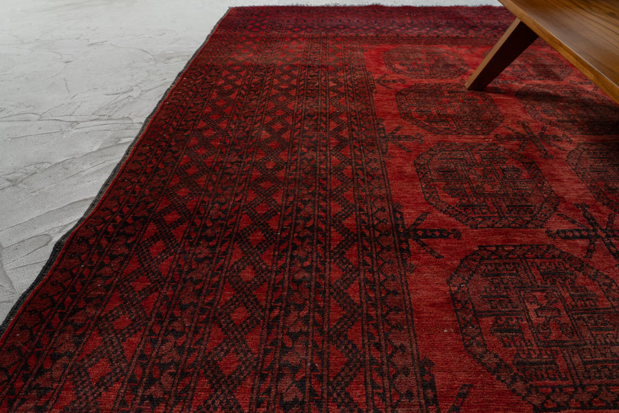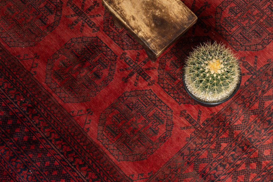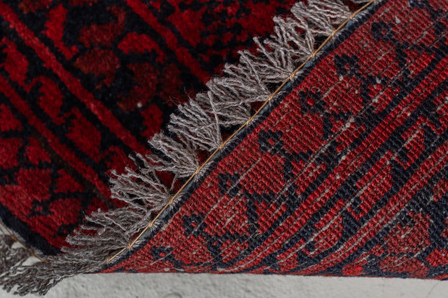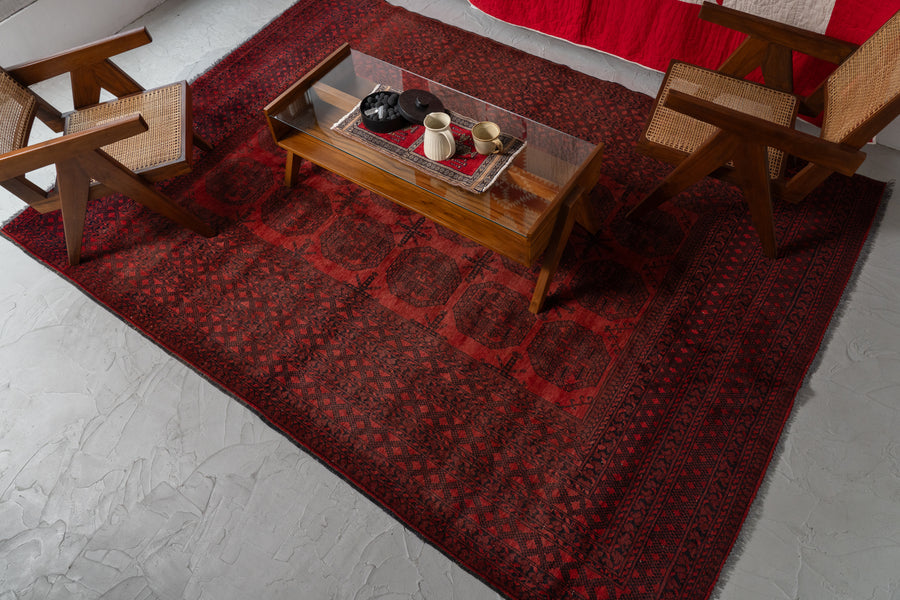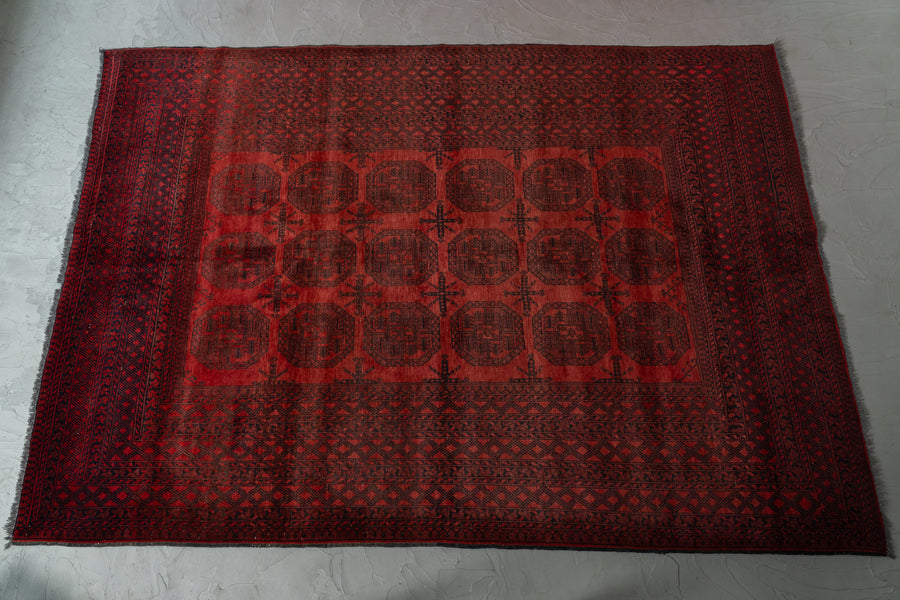このラグを織ったトルクメン族は自分達が着ている民族衣装から住まいのテントまで赤を基調としたものを使用していて、赤い絨毯といえばトルクメンラグが真っ先に出てくる程世界的にも赤いラグで有名な民族です。