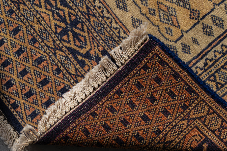 毛足は全体的に短くなってきていますが厚みはヴィンテージのパキスタンラグでは平均的な7㎜程ございます。