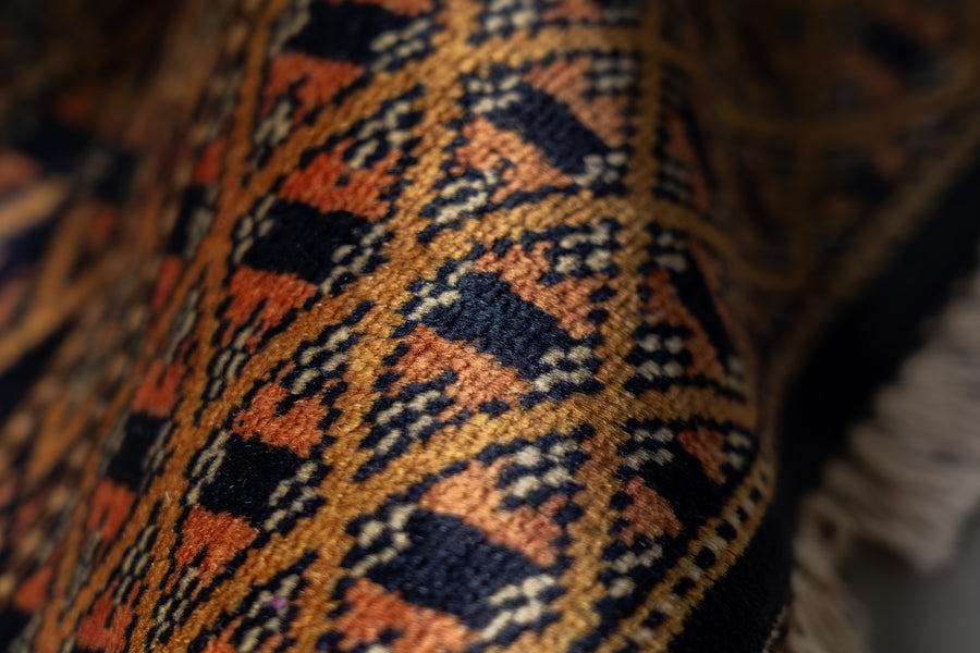 パキスタン産 1980年代 ヴィンテージラグ パキスタンラグ イーブルアイ 魔除け ブラウン オレンジ 玄関マット 玄関 キッチンマット ベッドサイド 家具 ビンテージ 手織り 絨毯 カーペット ヴィンテージラグ専門店 amaleh 通販