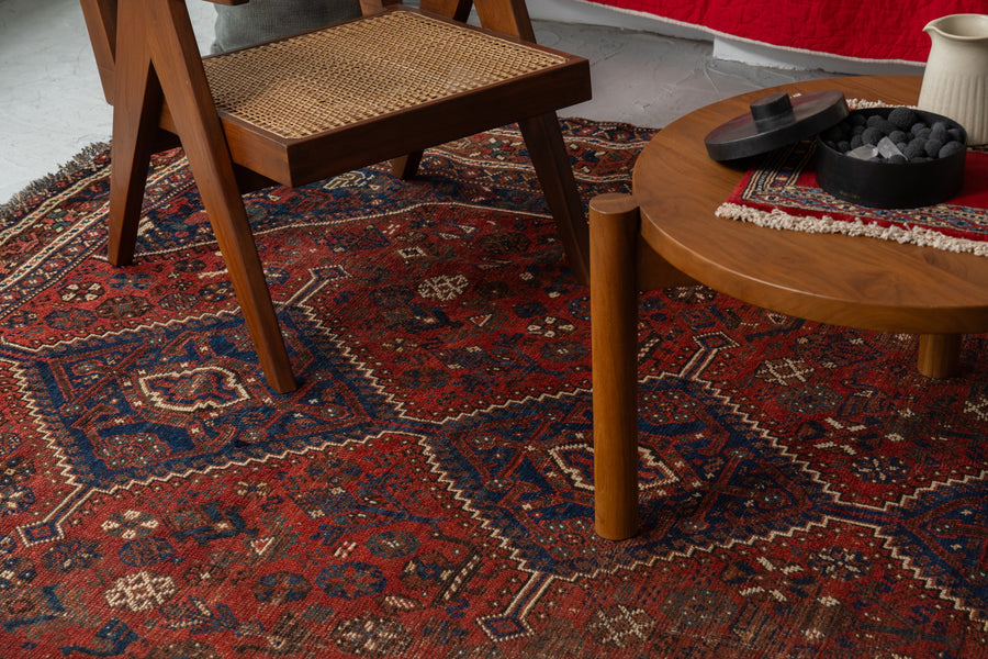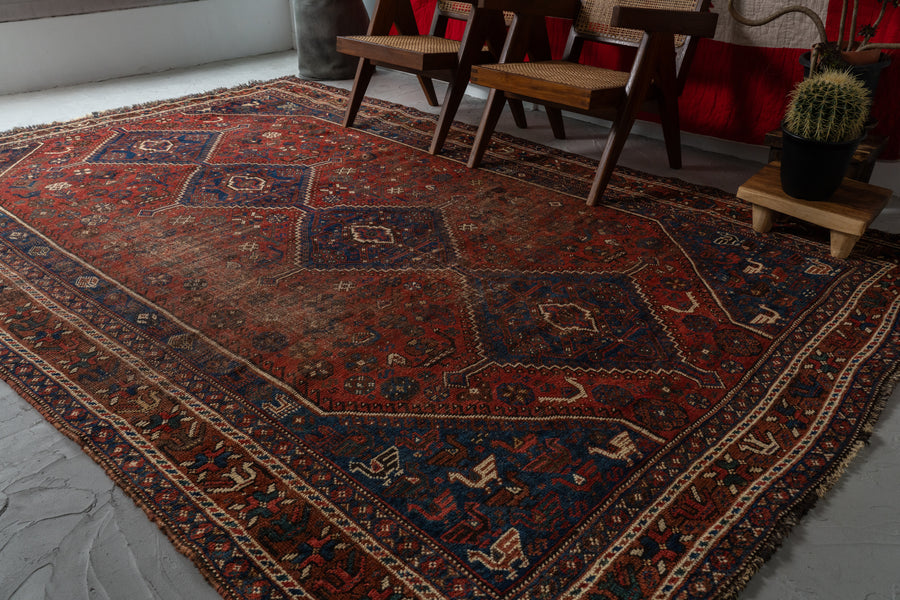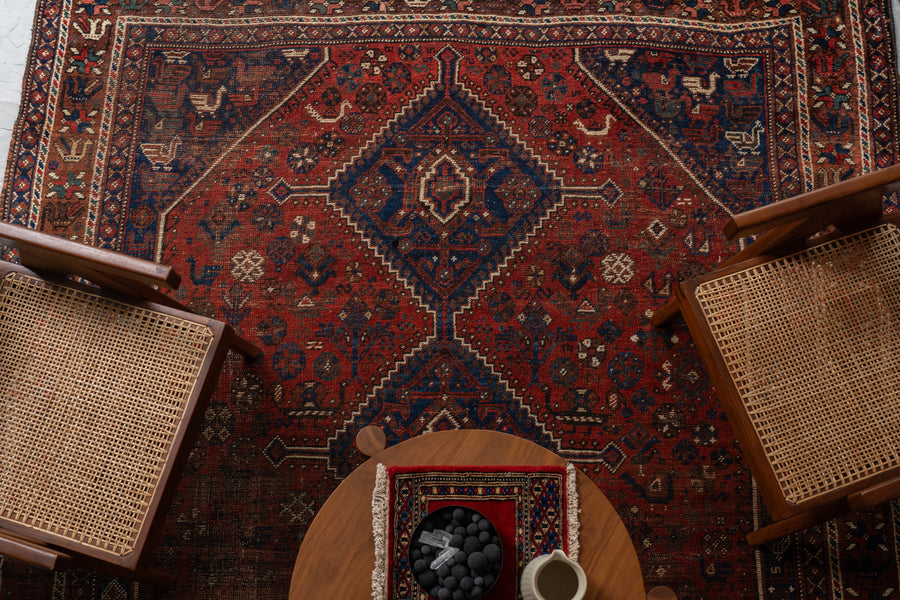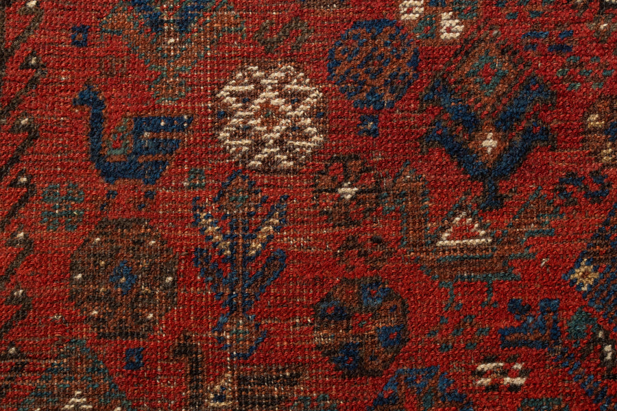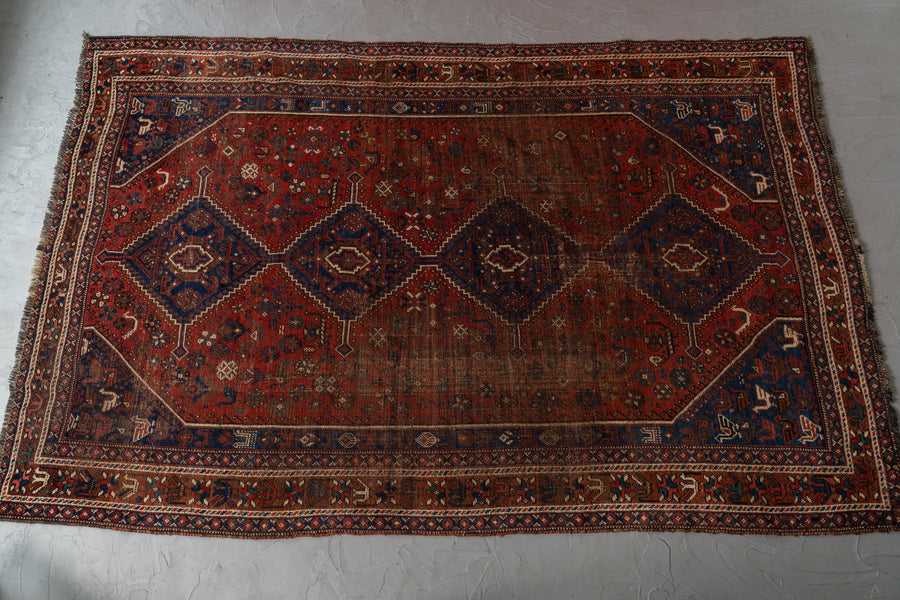 イラン産 1930年代 オールドラグ ヴィンテージラグ トライバルラグ ヴィンテージペルシャ絨毯 ヴィンテージトライバルラグ カシュガイ族 シラーズ 草木染め 天然染料 動物柄 植物 赤い絨毯 リビングサイズ 8畳 10畳 12畳 リビング ソファ 椅子 ダイニングテーブル ジャンヌレ PierreJeanneret 家具 ビンテージ カーペット 手織り絨毯 ヴィンテージラグ専門店 amaleh 通販